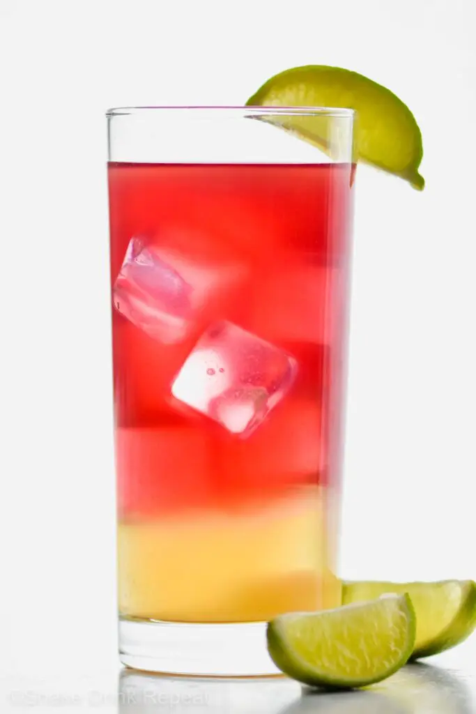 - Combine ingredients. To make this drink have the beautiful layers you see pictured here, add the vodka to the ice-filled glass first, then pineapple juice, and finally the cranberry cocktail juice.
